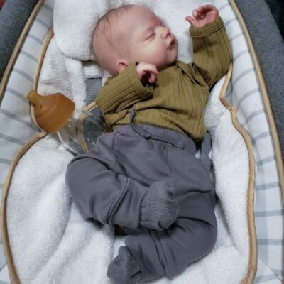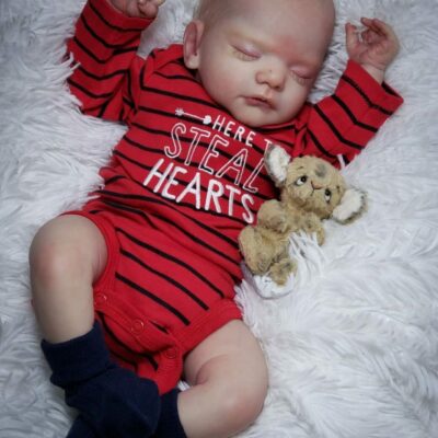 This darling little Olivia’s every inch body GentleTouch vinyl skin is baby soft, and allows for natural movement so you can raise his arms up high! There’s nothing as heartwarming as a sleeping baby breathing and cooing while he peacefully dreams the night away! And when you do, you’ll be so amazed at his oh-so-soft skin, squeezable fingers and toes and chubbiness on his arms and legs. Pick he up, and this little reborn baby doll Olivia is about 19 inches of lovable charm, with his arms and legs sweetly tucked together, and weighted to feel like an actual newborn in your arms, that you’ll never want to put his down!