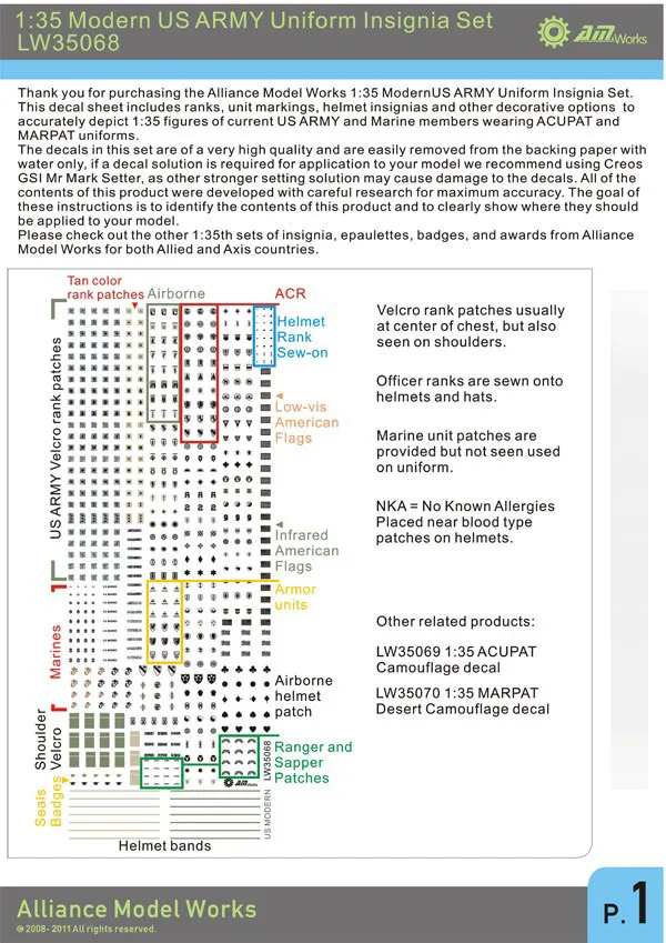 1/35 Modern US ARMY Uniform Insignia Set ACUPAT&MARPAT