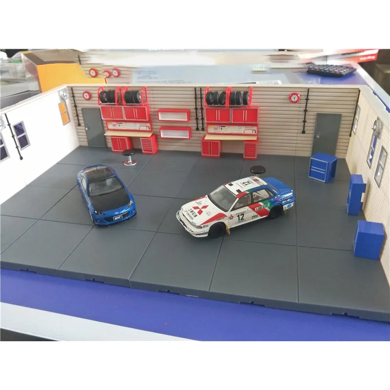 1/43 Car Model Scene Simulation Alloy Model Cars Repair Workshop Garage Scene Decoration Diy Static Display Blue
