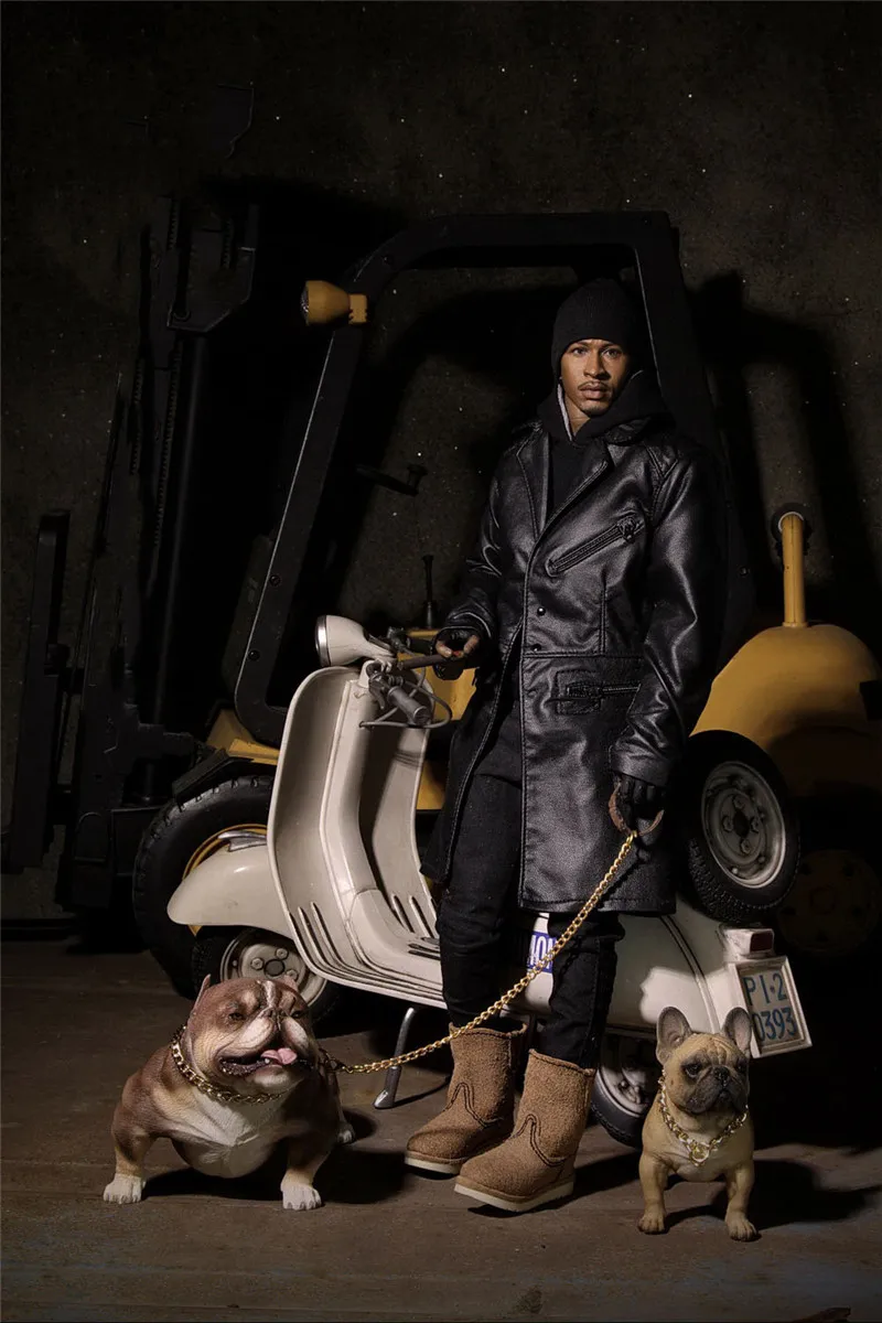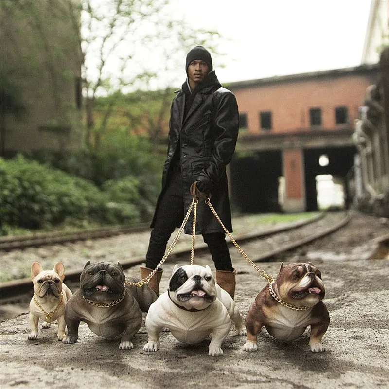1/6 Hand-made PVC Simulation Animal French Bulldog Toy with Collar and Chain Mini Ornaments for 12 inch Action Figure Body