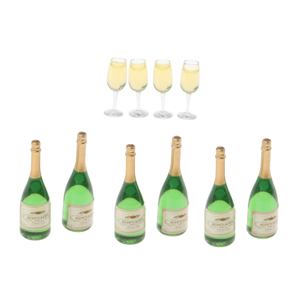10 Pack 1/12 Scale Wine Bottles Goblets Dollhouse Dining Table Accessories