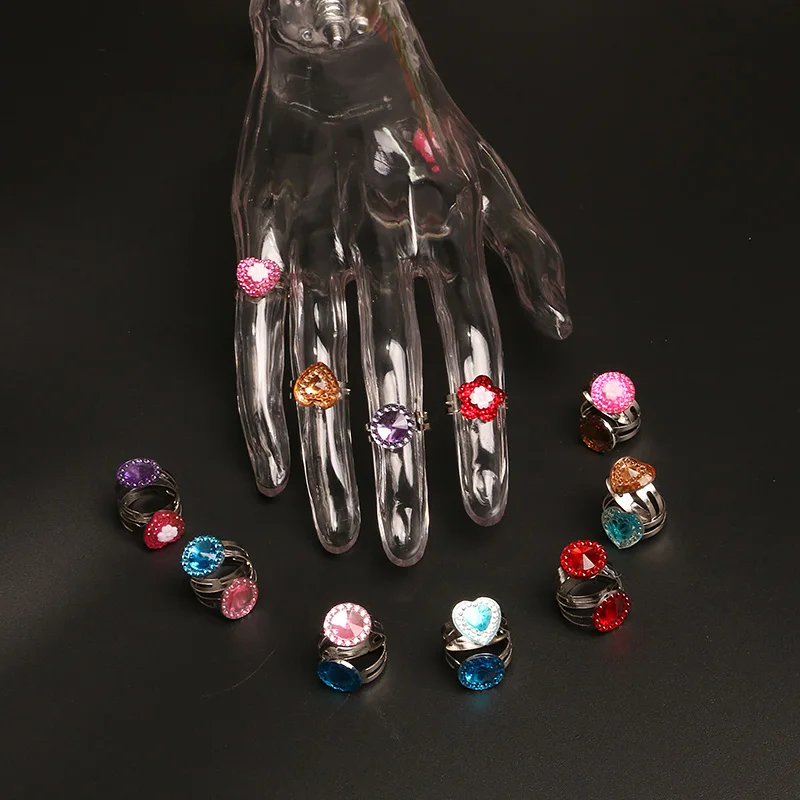 10pcs Rings Sweet Party Jewelry Accessories Christmas Gifts Play Finger Ring Kids Girls Child Princess Random Heart Flower WYW