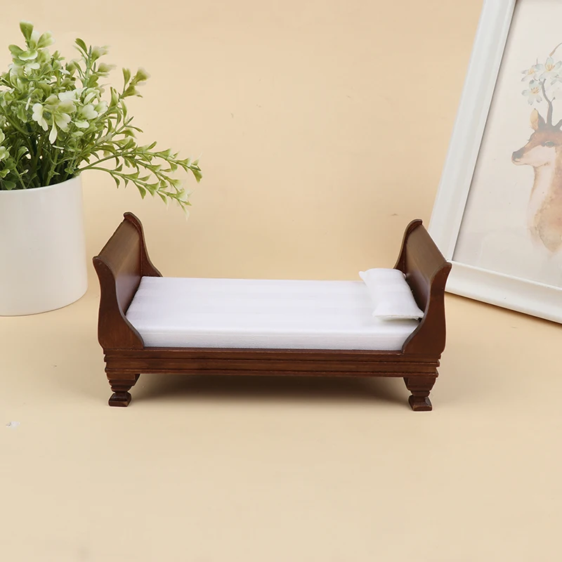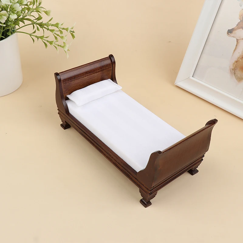 1:12 Dollhouse Miniature Wooden Furniture Single Bed Model Doll House Accessories Dollhouse Furniture 1/12