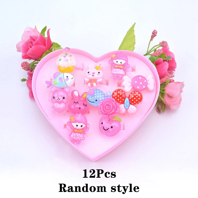 12/24/36Pcs Kids Girls Makeup Jewelry DIY Rings Toy Flower Cartoon Crystal Jewelry Children Princess Rings Decor Girl Gift
