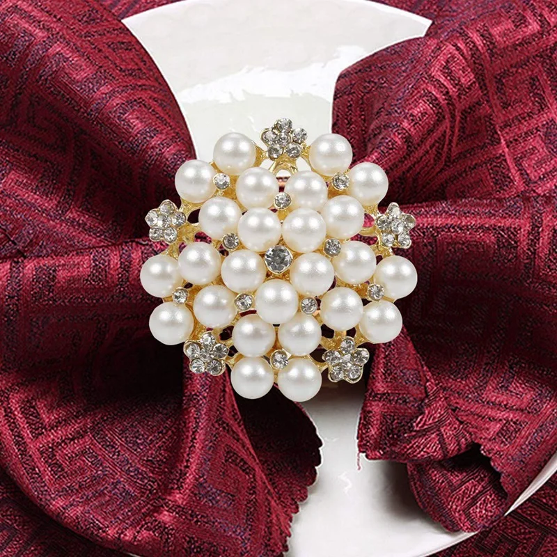 12 Pack Pearls Napkin Rings,Delicate Alloy Napkin Holder Ring Buckles perfect Table Setting Decor for Thanksgiving,Christmas,Wed