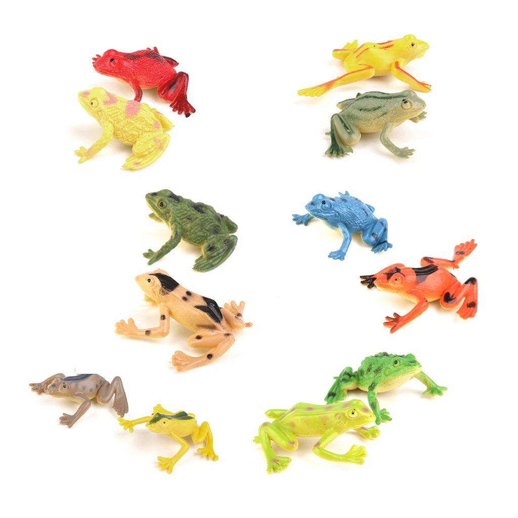 12 Pieces Mini Frog Figures Toys Plastic Lifelike Animal Model Gag Toys for Kids Halloween Party Favors School Educational Toys