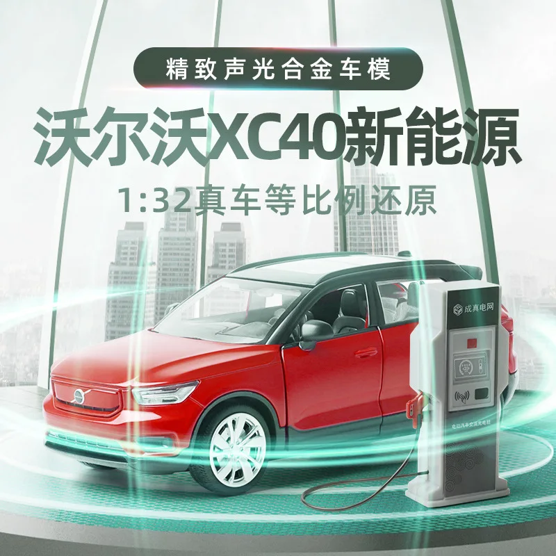 1:32 VOLVOS XC40 SUV Charging Pile Alloy Off-road Diecast Model Toy Cars Sound Light Pull Back Car Vehicle Toys For Children
