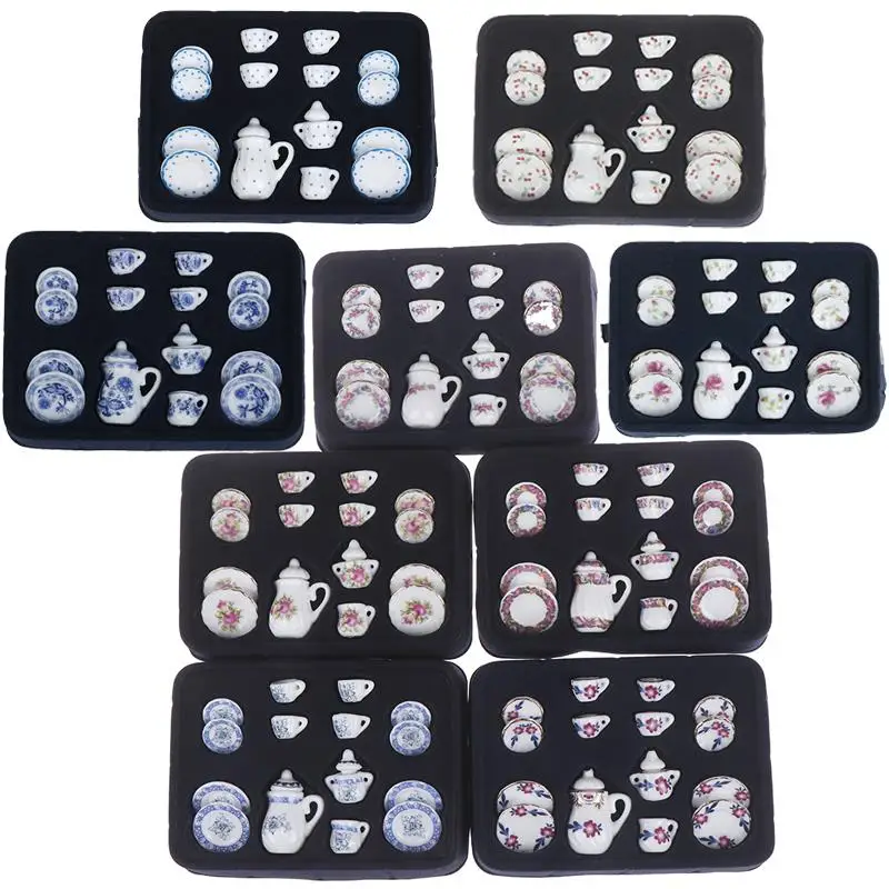 15Pcs 1:12 Miniature Porcelain Tea Cup Set Flower Tableware Kitchen Dollhouse Furniture Toys For Children Tea Cups Dollhouse