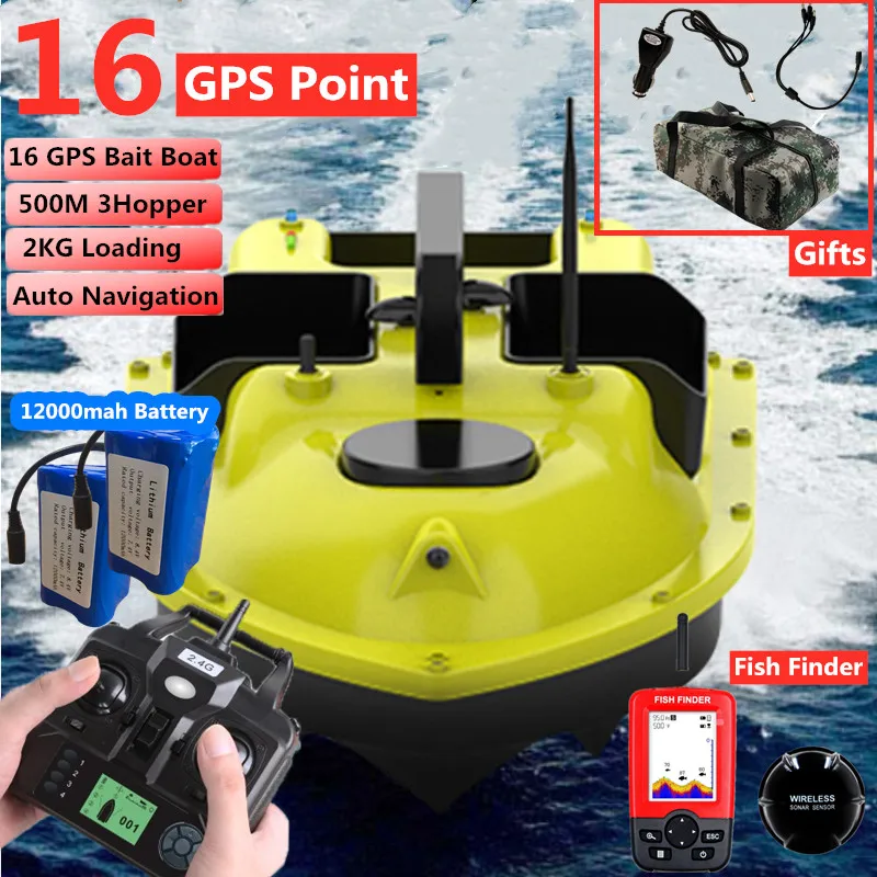 16 Point GPS Bait Boat 3 Hoppers 500M 2KG Load GPS Auto Feed Return Fishing Bait Boat With Fish Finder RC Fishing Finder Boat To
