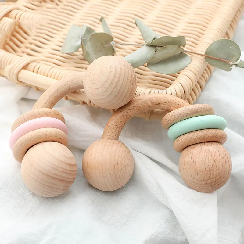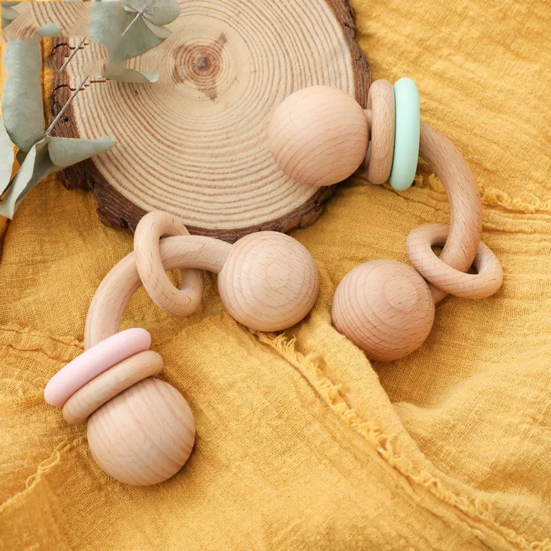 1PC Baby Rattle Toys Half Ring Beech Toys Silicone Rings Rodent Musical Chew Play Gym Montessori Stroller For Children Products