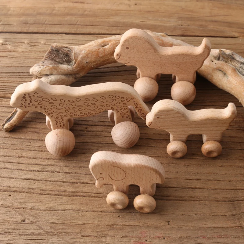 1pc Baby Toys Wooden Car Beech Animal Elephant Montessori Toys Wooden Rattle Girl Boy Blocks BPA Free Educational Baby Products