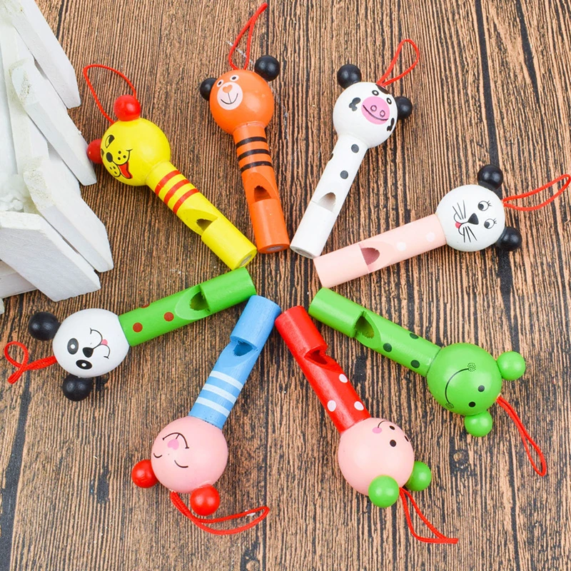 1pc Funny Wooden Toys Cartoon Animal Whistle Key Hanger Early Education Music Instrument Toy For Baby Children Gift Random Color