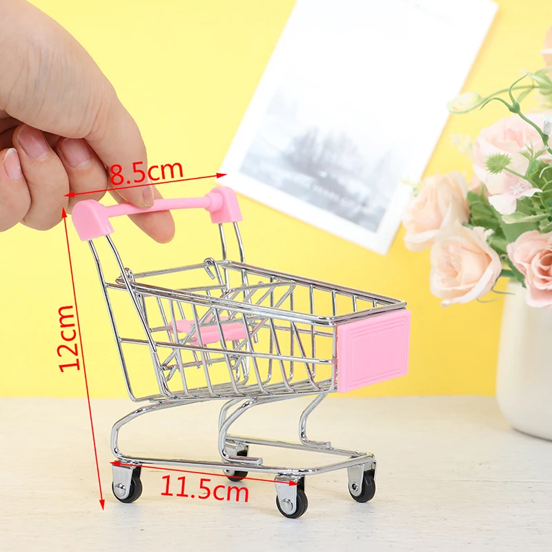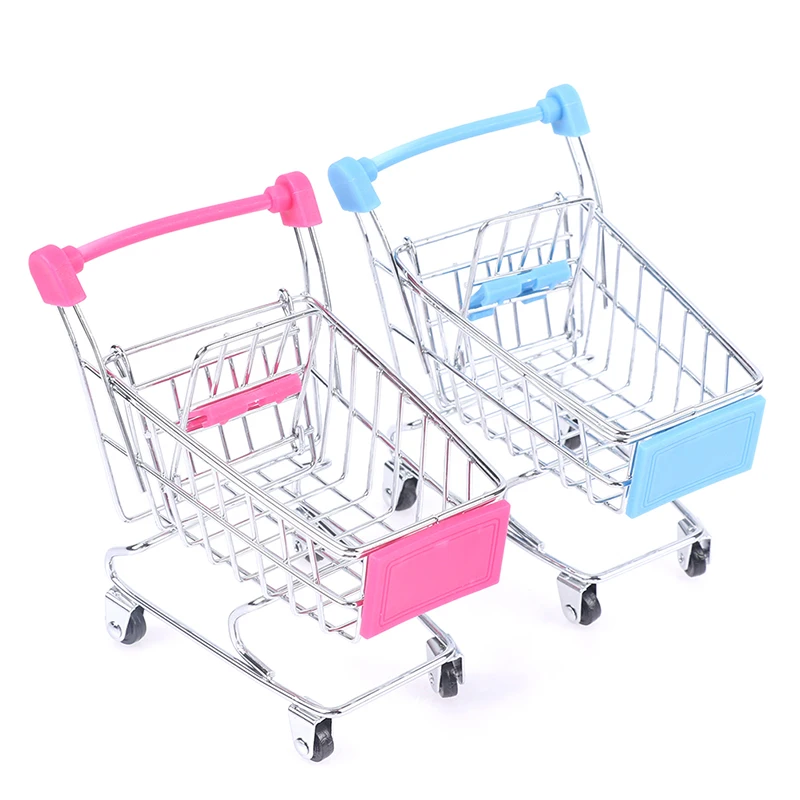 1pc Mini Shopping Cart Trolley Home Office Sundries Storage Ornaments Model Children’s Toy
