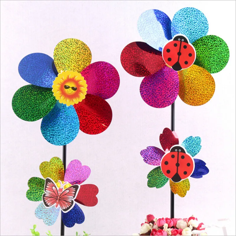 1PC Wind Spinner Kids Toy Colorful Sequins Double Layer Sunflower Windmill Wind Spinner Home Garden Yard Decoration