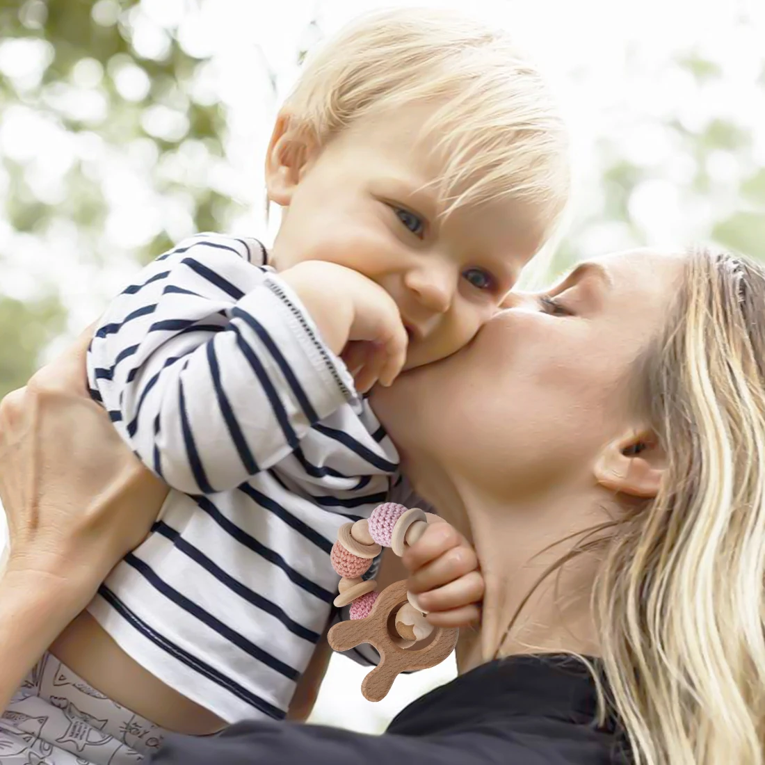 1PC Wooden Teether Cartoon Animal Baby Bracelet Crochet Beads Wood Crafts Ring Engraved Beads Baby Teether Wooden Toys Product