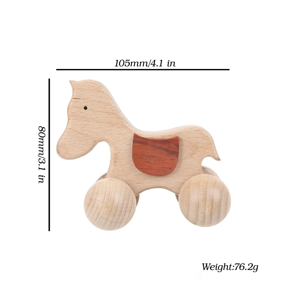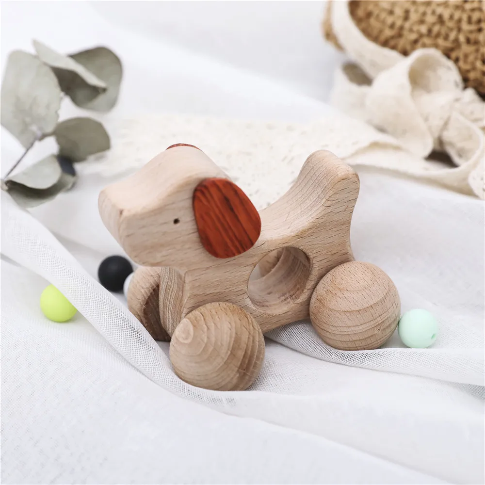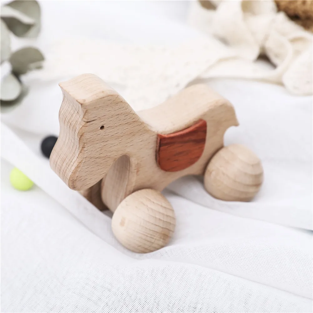 1PCS Baby Toys Wooden Car Cartoon Animals Shape Food Grade BPA Free Newborn Montessori Handmade Rattles Newborn Teether Toy Gift