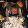 - Presents: a baby’s bottle, a pacifier, a birth card, random clothes.