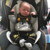 - Presents: a baby’s bottle, a pacifier, a birth card, random clothes.