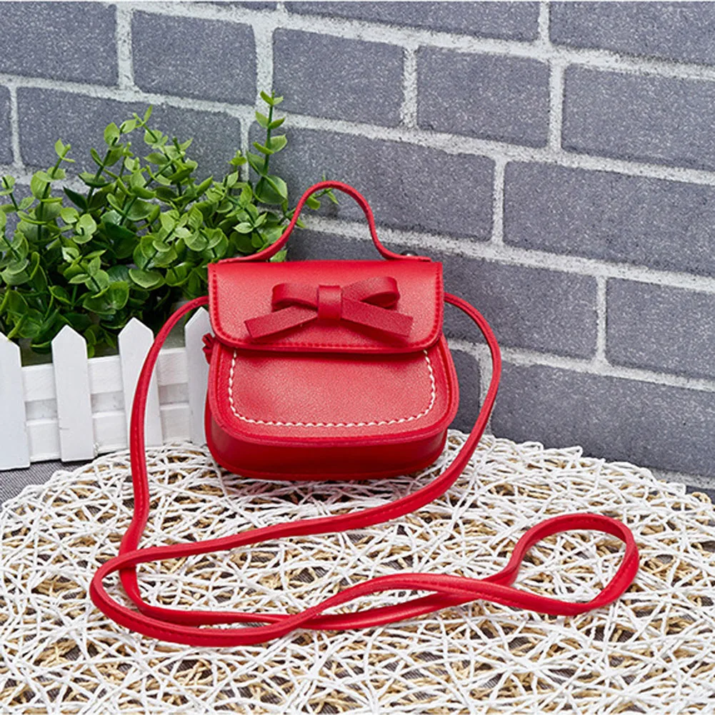 2022 New Children Girls Cute Bowknot Pure Color Handbags Kids Leather Shoulder Bags Mini Crossbody Bag Clutch