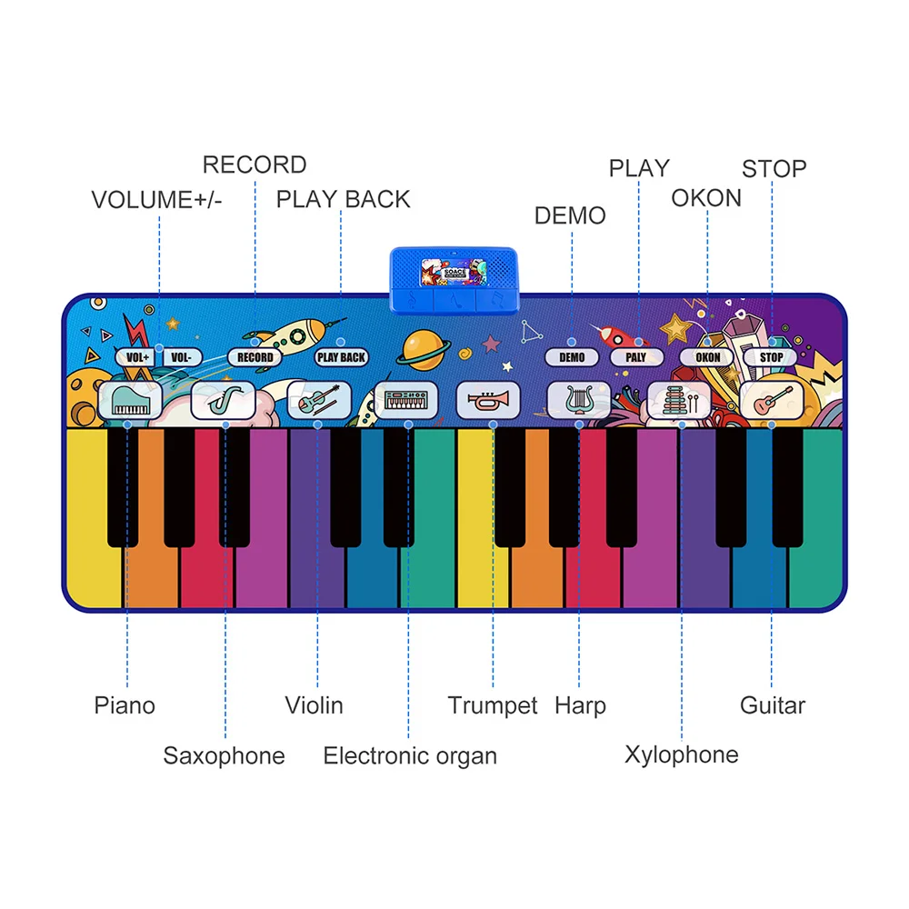 2022 New Arrivals 180x72cm Big Piano Mat Keyboard Electronic Floor Music Mat Baby Play Mat with 24 Keys Educational Toys Gifts