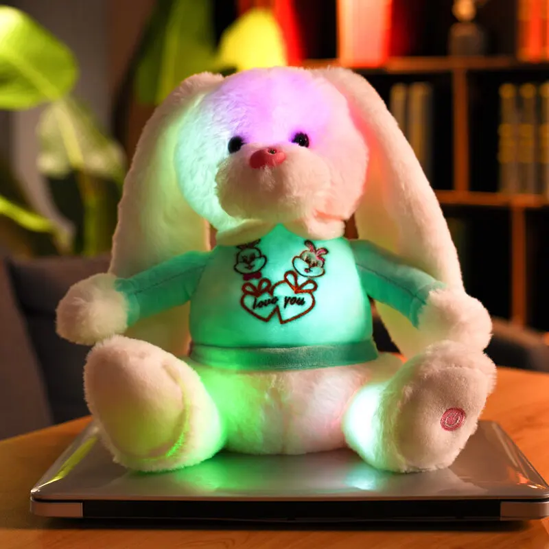 28cm Beautiful Adorable Light Up Shining Stuffed Animal Bunny Rabbit Plush Toy Soft Doll Gift for Children Adults Home Decor