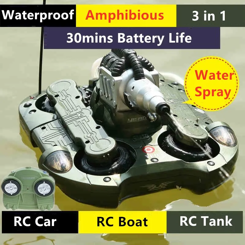 3-in-1 Amphibious RC Tank Launching Water Bombs Double Propellers Waterproof Electric Children’s Remote Control Stunt Tank Toy