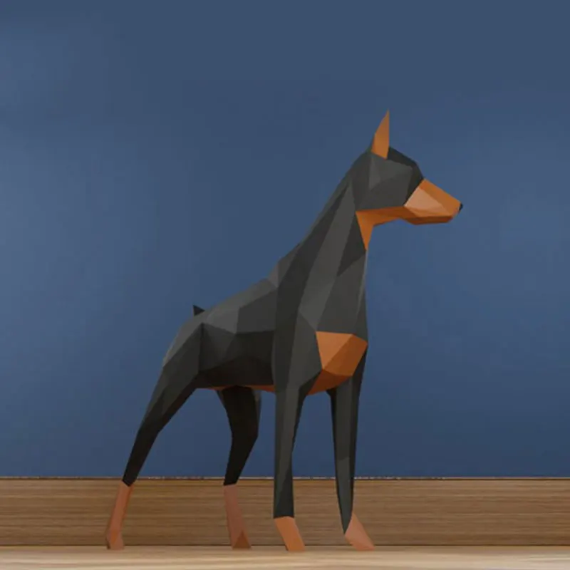 3D Doberman Dog Pinscher Three-dimensional Paper Model DIY Handmade Creative Craft Puzzles Educational Kid Toy Living Room Decor