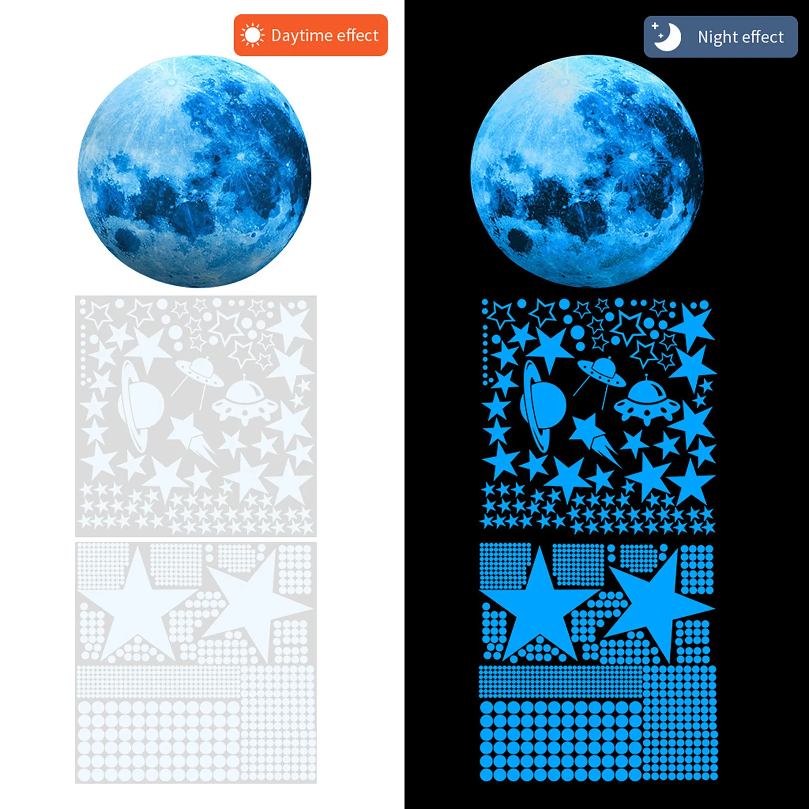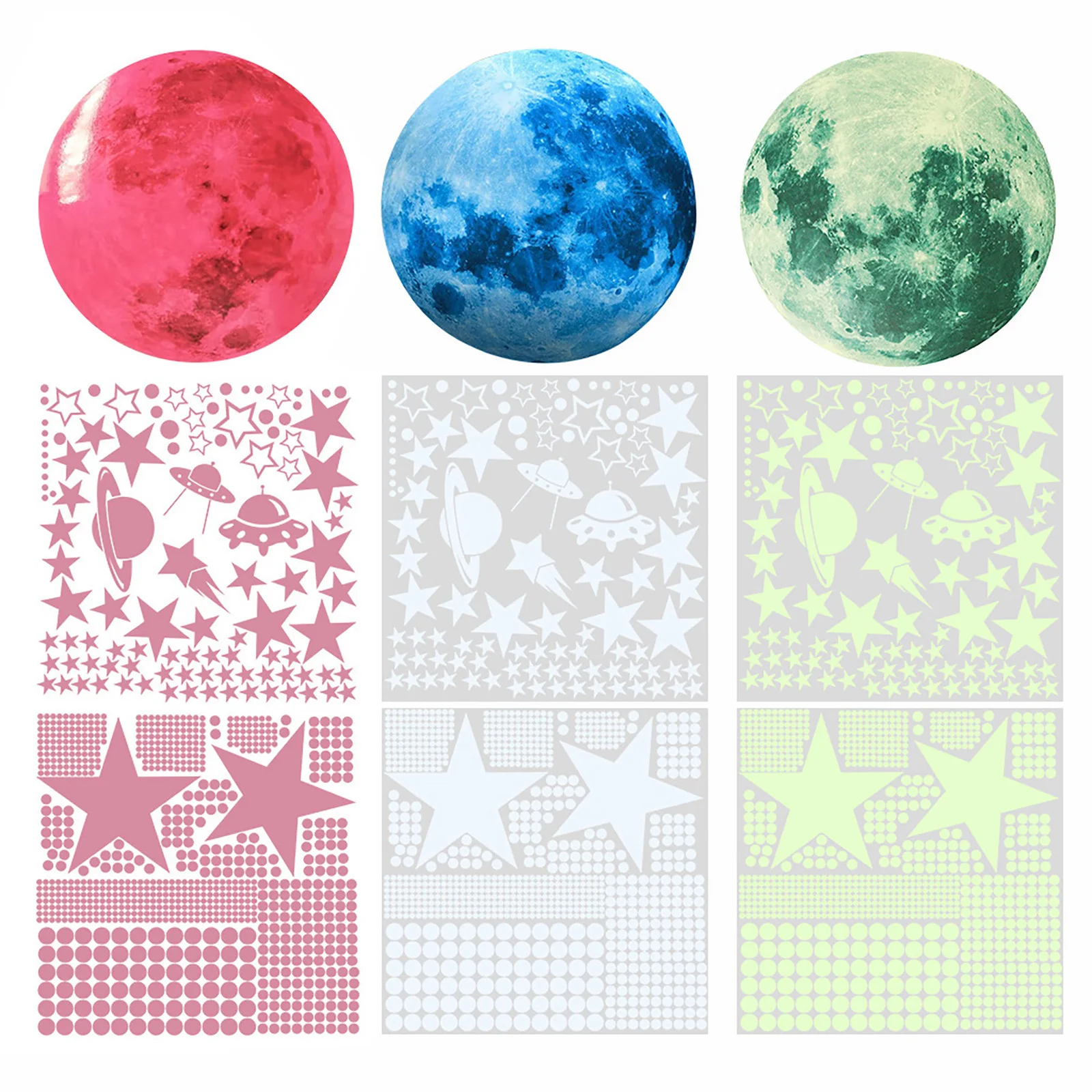 435/930pcs Luminous 3D Star Moon Dot Wall Stickers Glow in the Dark Kids Room Bedroom Ceiling Home Decoration Fluorescent Glow