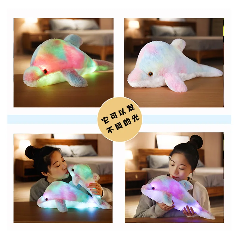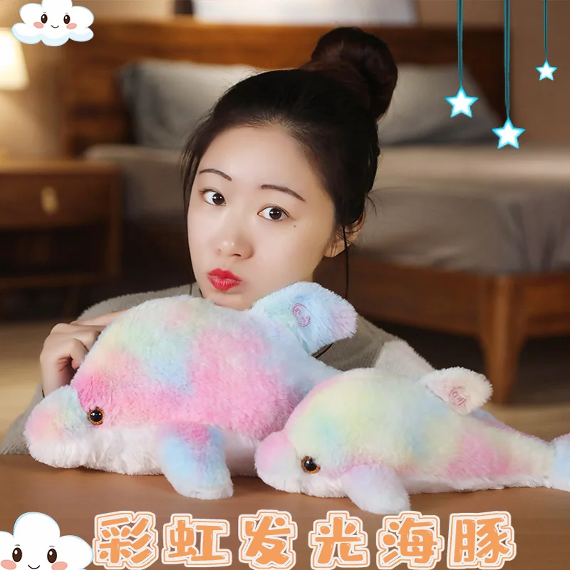 45cm 30cm Rainbow Creative Light Up Led Dolphin Stuffed Animals Plush Toy Colorful Fish Glowing Christmas Gift For Kids Pillow