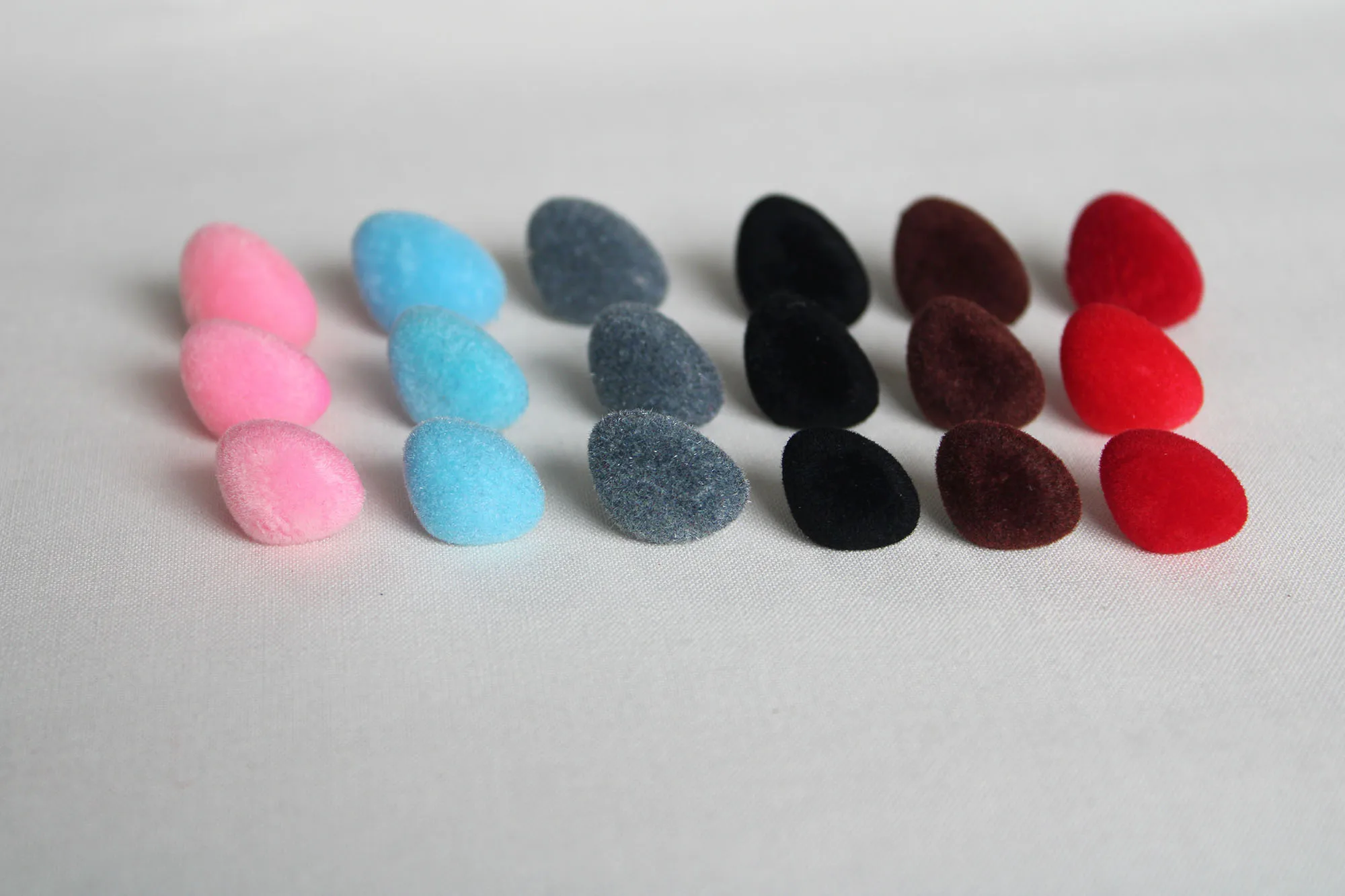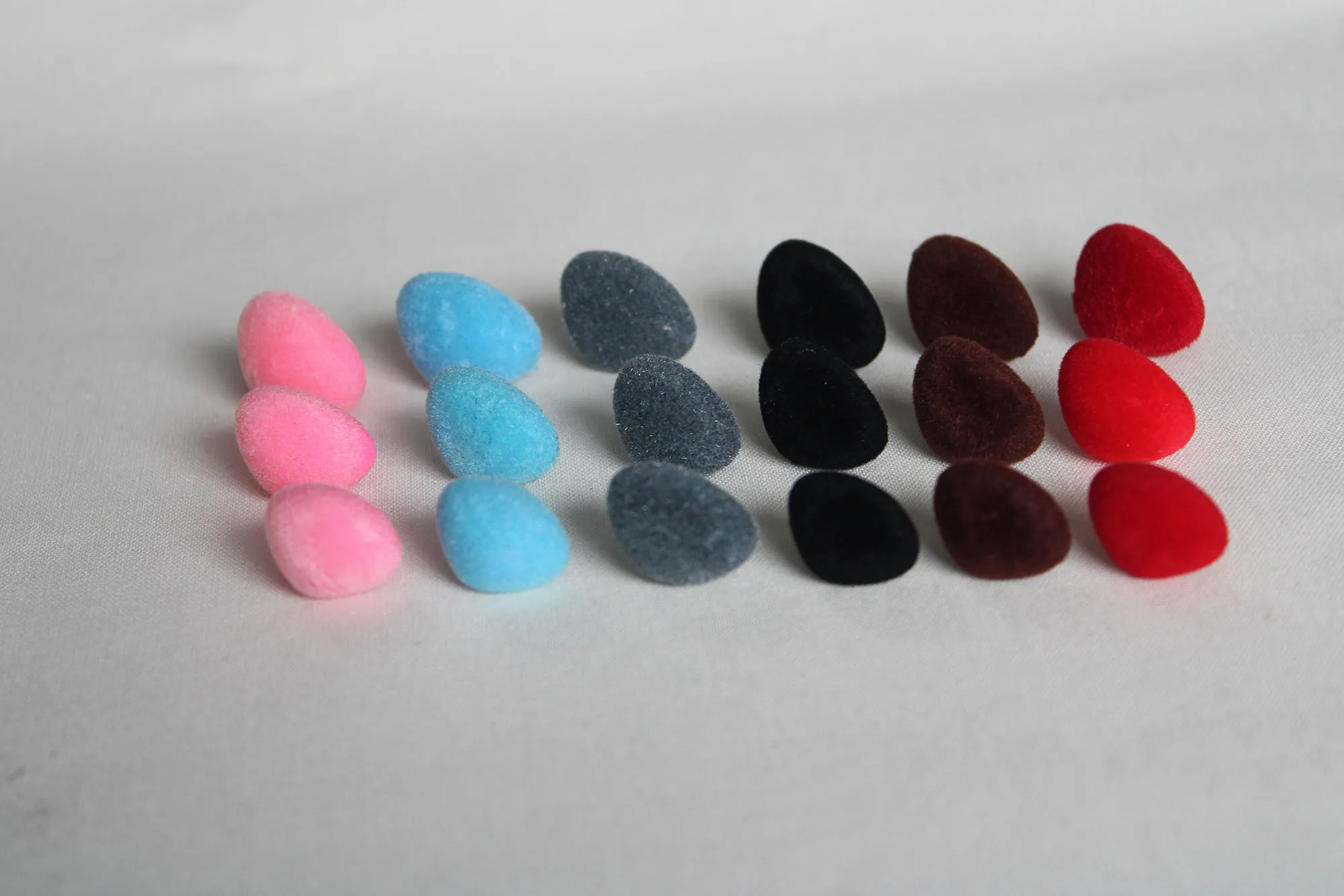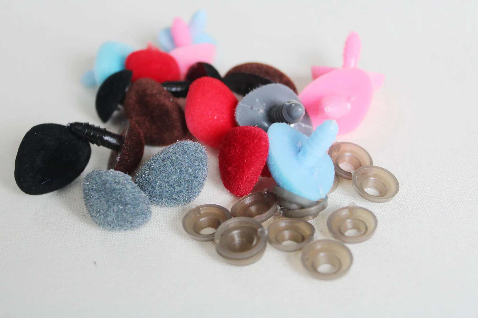 50pcs 12mm 15mm 18mm 20mm 22mm 24mm 26mm pink/red/black/brown gray blue flocking Triangular safety toy nose with soft washer