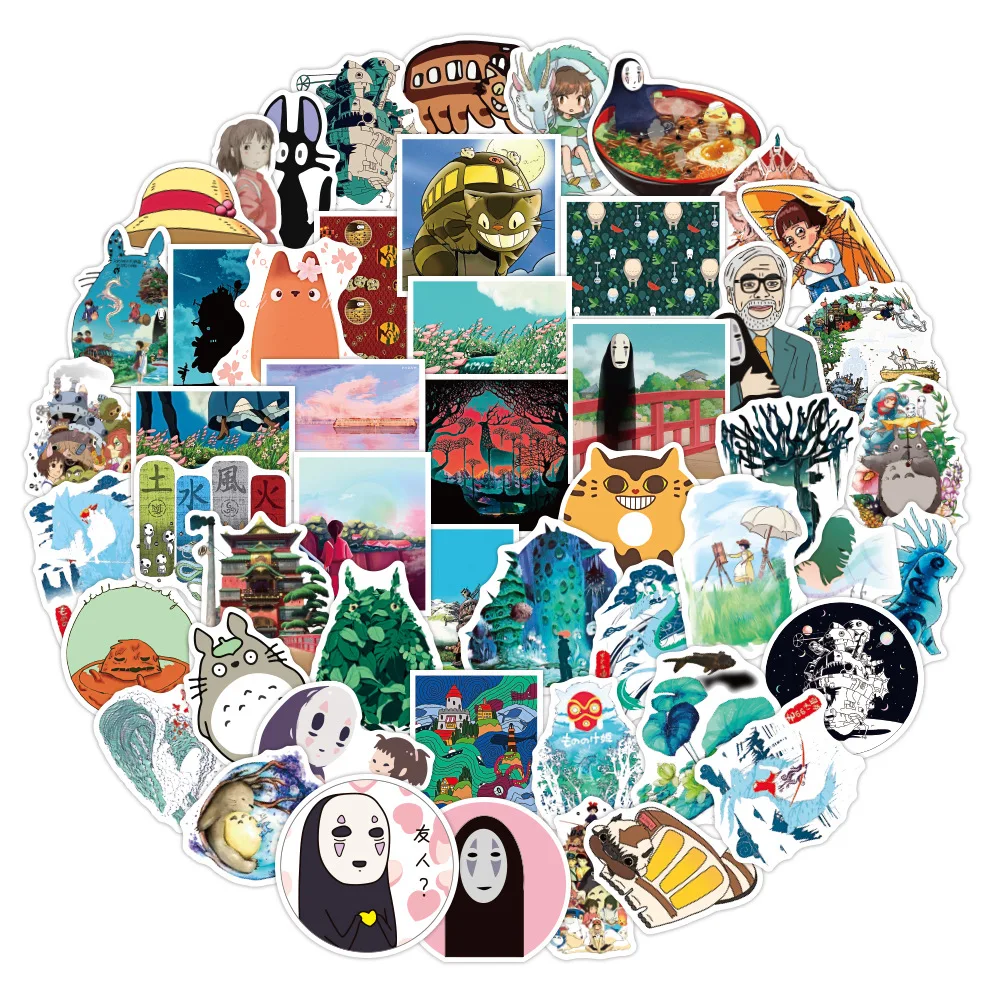 50Pcs Japanese Anime Ghibli Hayao Miyazaki Totoro Spirited Away Stickers Princess Mononoke KiKi Student Stationery Sticker Decal