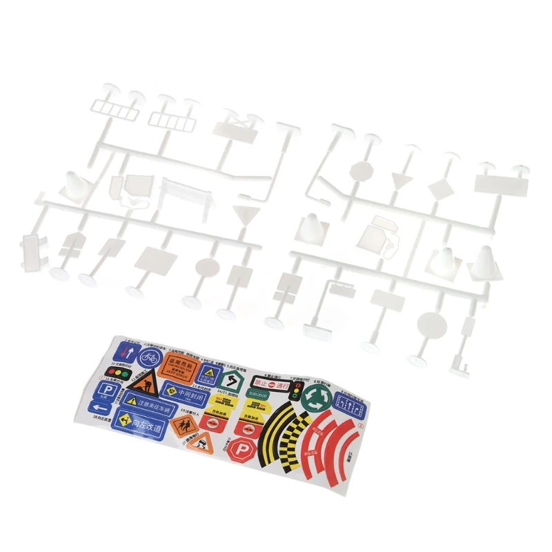 56 pcs/ set of children DIY model scene toy sign road sign traffic sign