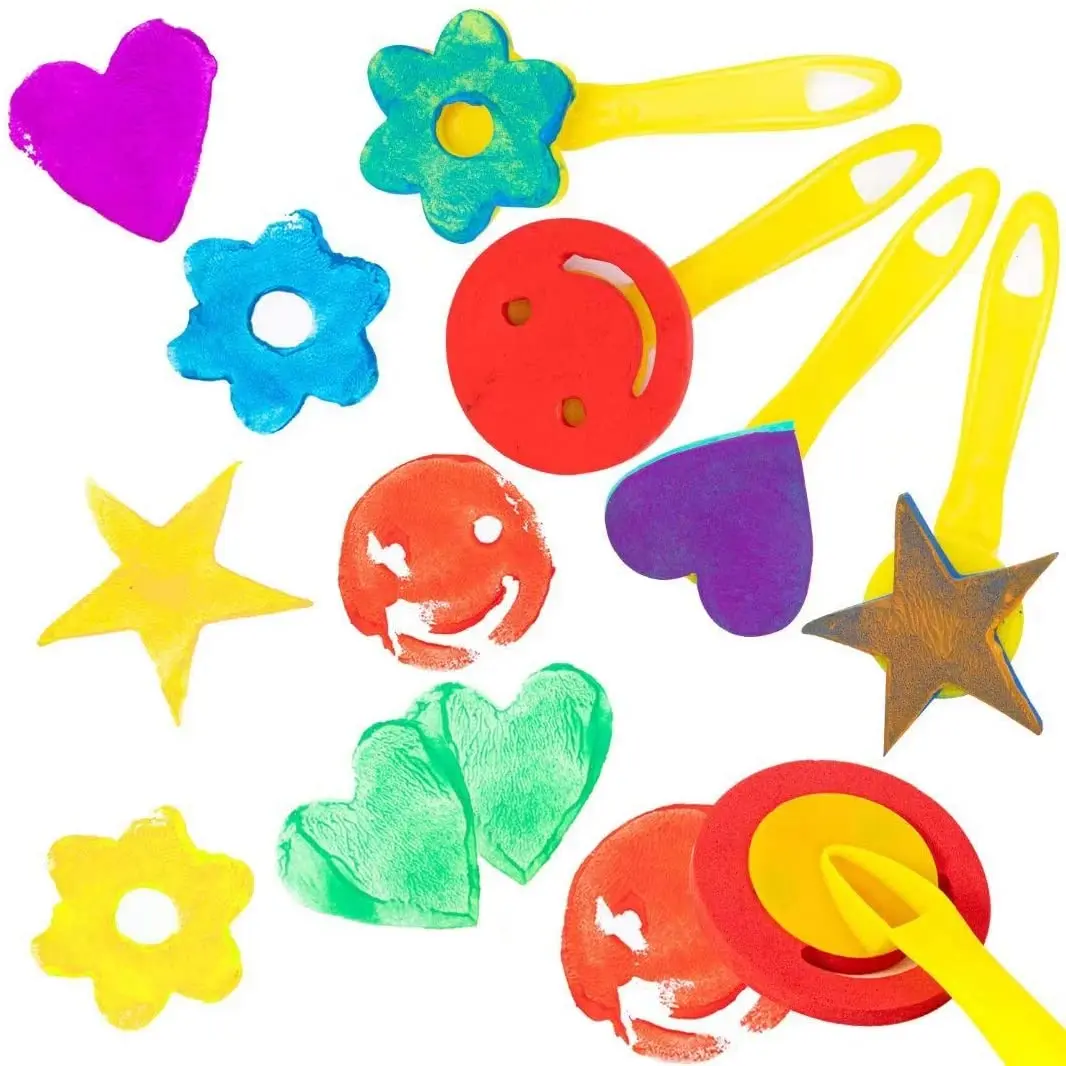 56Pcs Diy Children Painting Foam Sponge Brush Apron Moulds Tool Kit for Kids Early Art Education Learning Drawing Graffito Gift