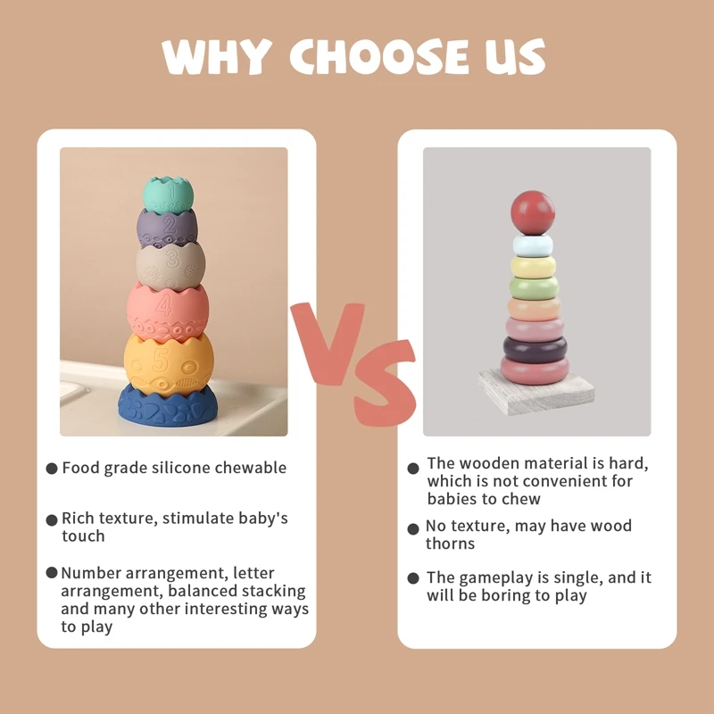 6Pcs Baby Silicone Stacked Toys Montessori Education Stacking Blocks Soft Rubber BPA Free Infant Teether Kid Building Block Toys