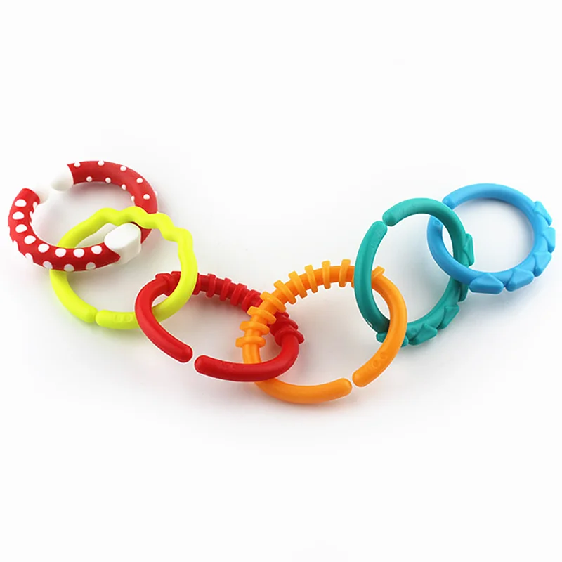 6pcs/Set Cute Colorful Rainbow Rings Baby Teether Toy Crib Bed Stroller Hanging Rattles Grasping sensoriel Toy Educational Gift