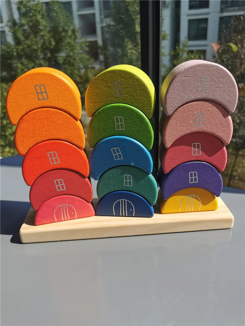 Babay Rainbow Wood Toy Montessori Building House Wooden Stacking Moon Pastel Cubic Mosaic Butterfly Blocks Flower Brick