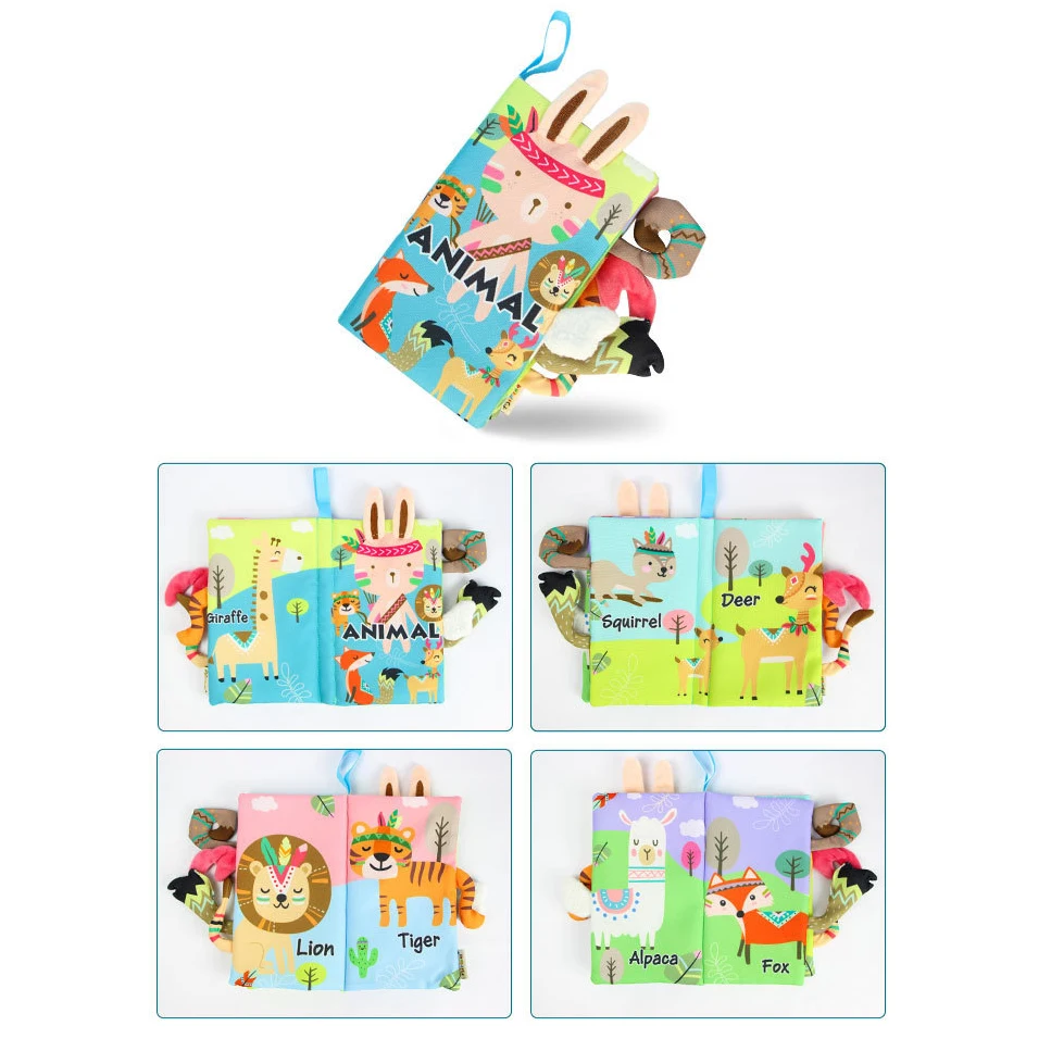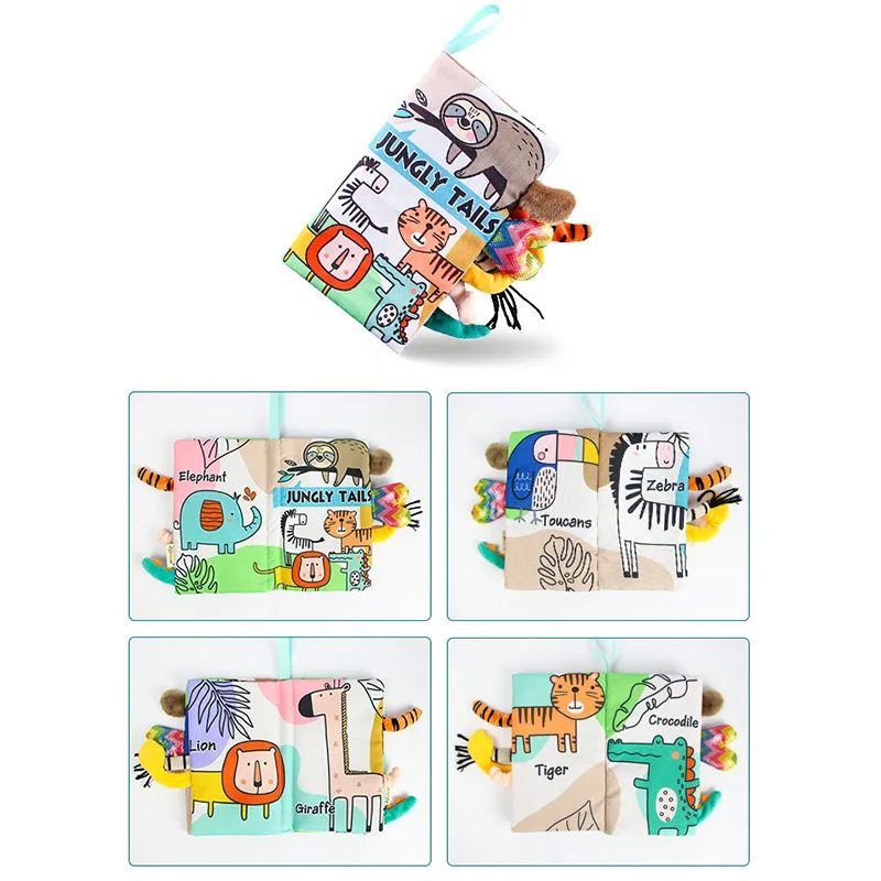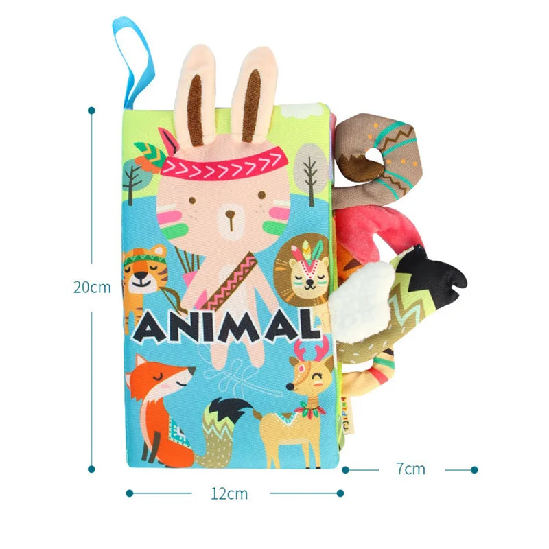 Baby Animal 3D Tails Cloth Book With Crinkle Paper BB Device Kids Early Development Interactive Car Stroller Toy For 0-36 Months
