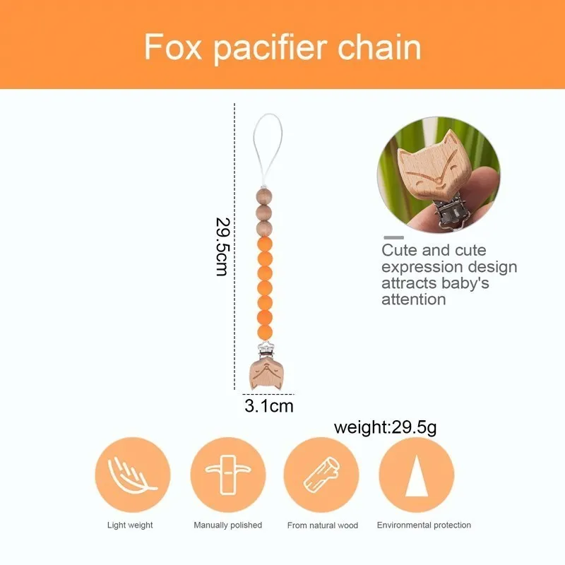 Baby Handmade Pacifier Chain Clip Dummy Nipples Holder Fox Clips Holder Chain For Infant Feeding Toddler Chew Toy Clips BPA Free