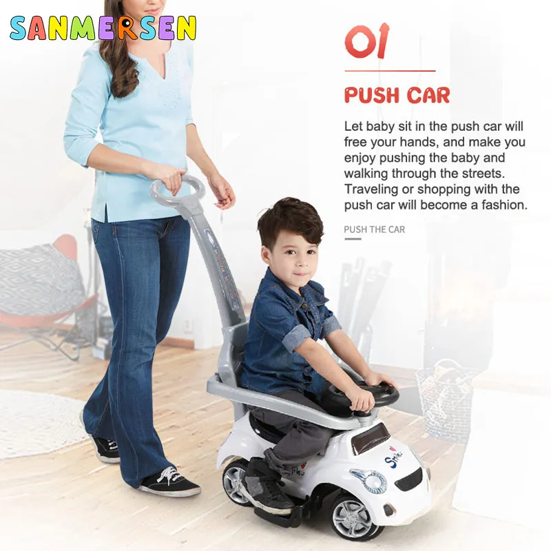 Baby Scooter Children Walker Ride on Toy Car 3 in 1 Four-Wheeled Music Hand Push Trolley Kids Outdoor Toys Yo Car 1-4 Years