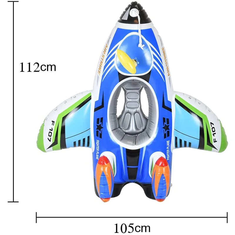 Baby Swimming Ring Inflatable Airplane Pool Float Boat with Handle Automatic Pumping Water Gun Fun Beach Pool Toy for Boys Girls