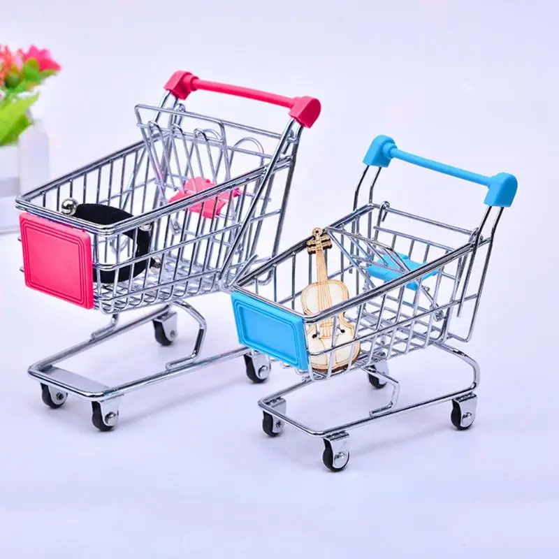 Baby Toy Supermarket Hand Trolley Mini Shopping Cart Desktop Decoration Storage Toy Gift Dollhouse Furniture Accessories