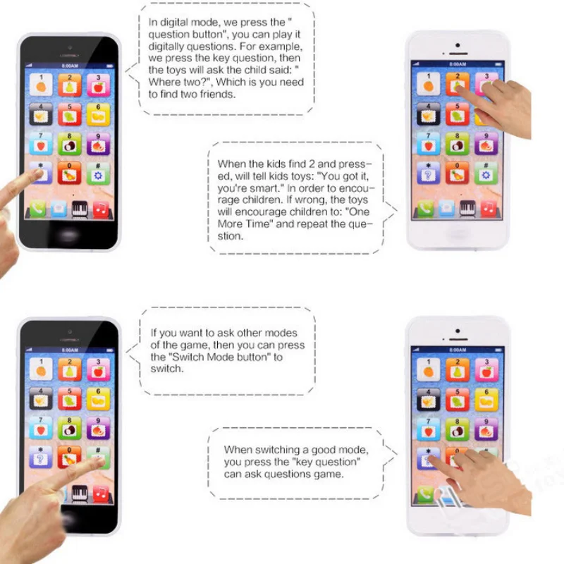 Baby Toy with LED Cellphone Learning English Mobile Phone Electronic Toys Christmas Kid Gifts Educational musical Vocal toys