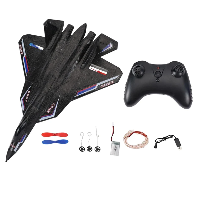 BBSONG SU 57 RC Plane Radio Remote Control Airplane with Light Fixed Wing Electric Controlled EPP Foam Aircraft Toy For Children