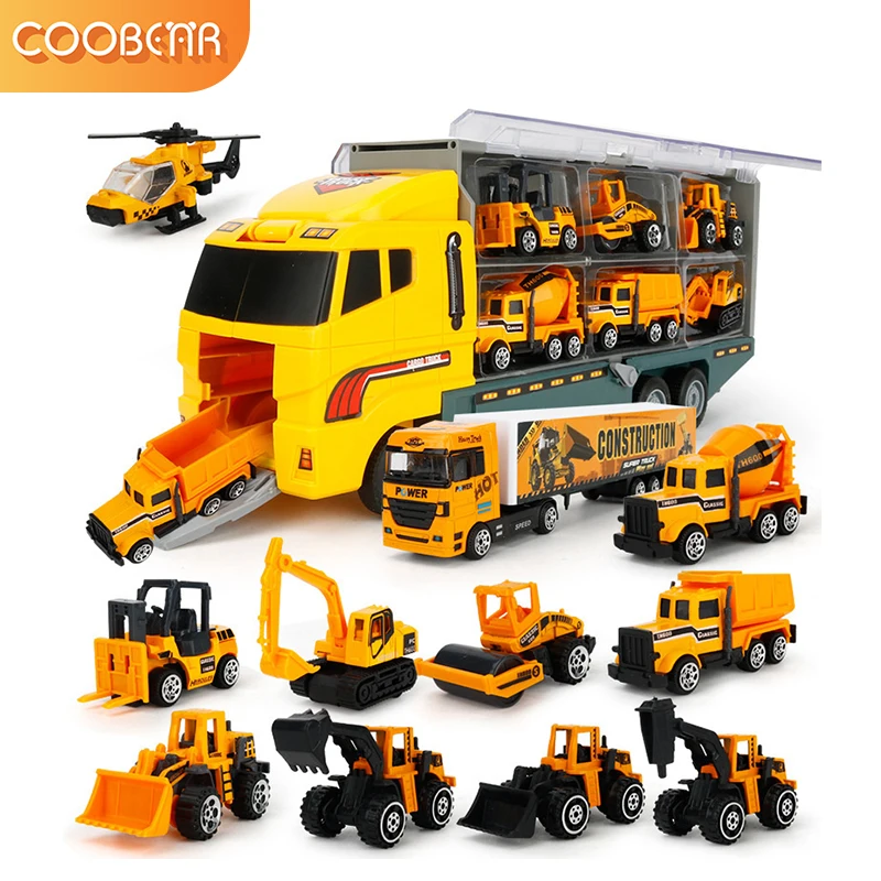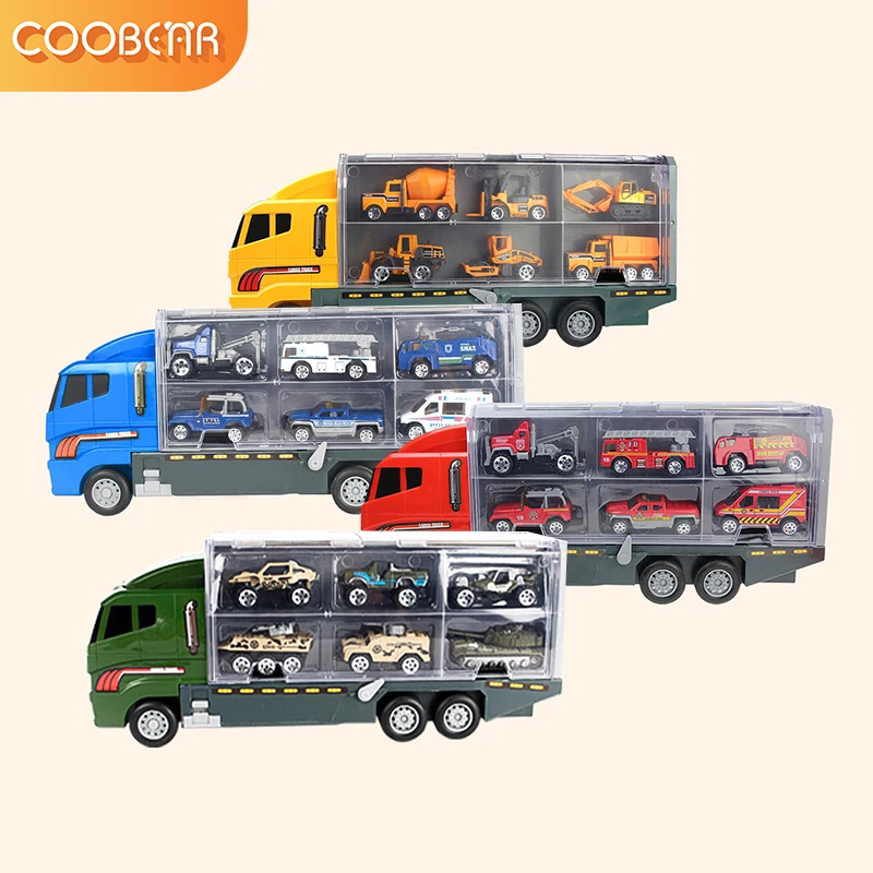 Big Transport Car Toys Container Carrier Truck Vehicles & 6PCS Mini Alloy Diecast Engineering Car Model Gifts For Kids Boys