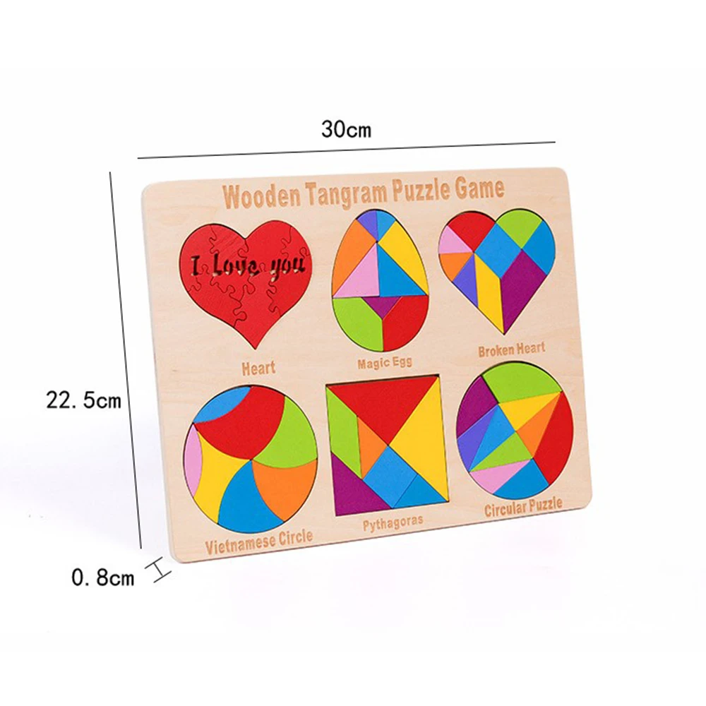 Blocks Puzzle Brain Teasers Toy for Kids Baby Smooth Surface Colorful 3D Tangram for Kids Learning & Education Toys M09
