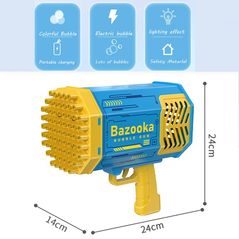 18 reviews for Bubble Gun 69 Holes Automatic Rainbow Rocket Boom for Kid Light Up Music Bubble Machine Party Supplies for Birthday Gift