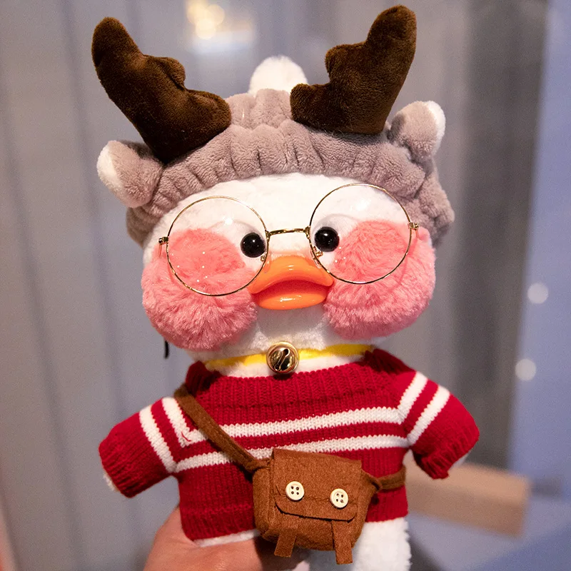 Cafe Duck 30cm Little Yellow Duck Cute Pillow Plush Toy Stuffed Doll Wearing Glasses and Clothes Cartoon Cute Toy