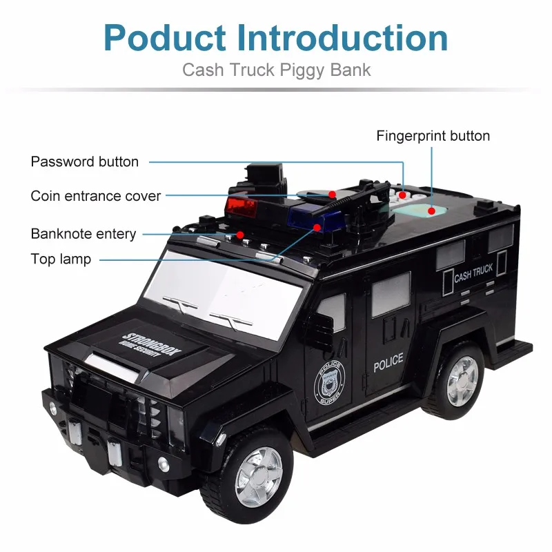 15 reviews for Cartoon Piggy Bank Toys Smart Music Password Banknote Car Coin Bank Figure Toy Pretend Play Saving Money Box Kids Police Cars