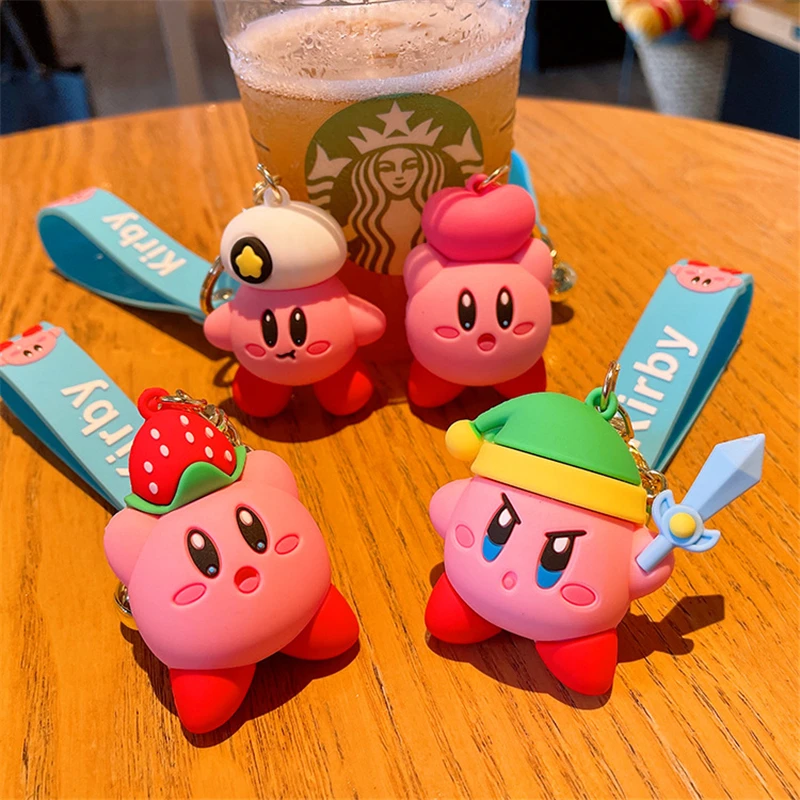 Cartoon Waddle Dee Doo Game Sweet Pink Kirby Anime Pendant Kabi Keychian Children Birthday Gifts Women Car Bag Key Chian Girls