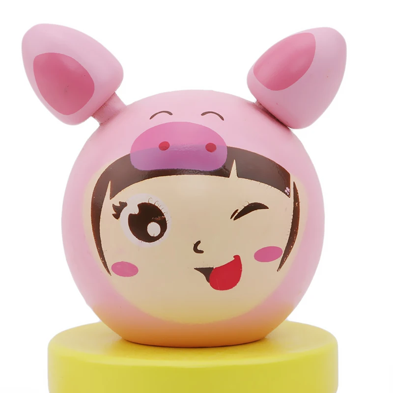 Cartoon Wooden Educational Block Toys Tumbler Doll Roly-poly Mobile Toy For Baby Newborns Kids Gift Stacking Game